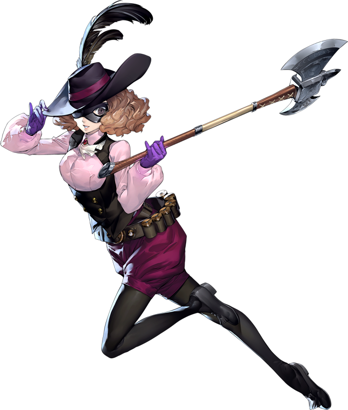To be completely fair, it's mostly for the sake of intimidation, since Haru herself isn't especially frightening to look at on a normal day. That's the same reason she's in her Phantom Thief getup, too - "Noir" is infinitely more intimidating than "Haru" is, after all.]